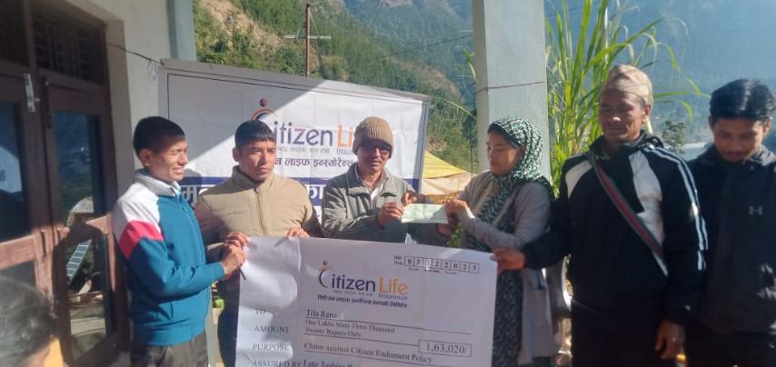 जाजरकोट भूकम्पमा परी ज्यान गुमाएकी रानाको परिवारलाई सिटिजन लाइफको दावी भुक्तानी
