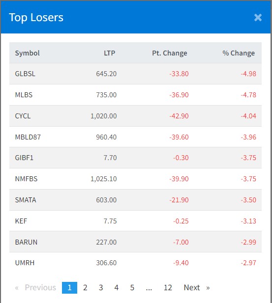 बिहीबार नेप्सेमा कारोबार भएका कम्पनीहरुमध्ये गुरासँ लघुवित्तको ४ दशमलव ९८ प्रतिशतले सर्वाधिक शेयरमूल्य घटेको छ । त्यस्तै, मानुषी लघुवित्तको ४.७८, सिवाइसी नेपाल लघुवित्तको ४.०४ प्रतिशत लगायत अन्य कम्पनीको शेयरमूल्य घटेको छ ।