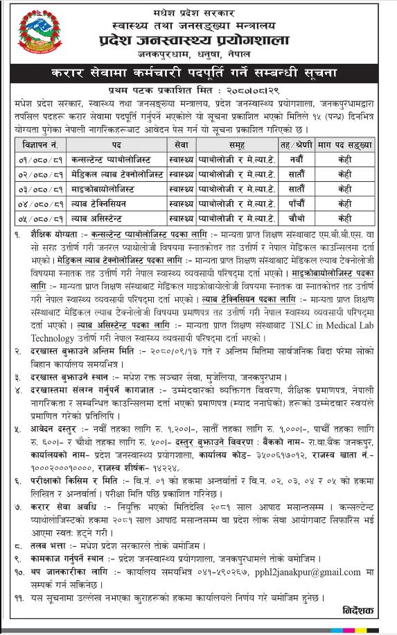मधेस प्रदेश जनस्वास्थ्य प्रयोगशालाले माग्यो कर्मचारी (सूचनासहित)
