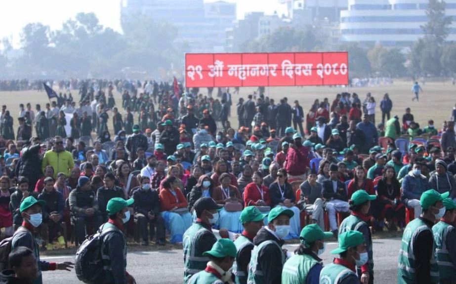 काठमाडौं । मुलुक कै जेठो महानगर काठमाडौं महानगरपालिकाले सैनिक मञ्च टुँडिखेलमा भव्य समारोहबीच शुुक्रबार २९औं महानगर दिवस मनाएको छ । प्रधानमन्त्री प्रचण्डलाई प्रमुख अतिथिका रूपमा सैनिक मञ्च बोलाएको महानगरले उपत्यकासहित विभिन्न स्थानीय तहका जनप्रतिनिधिहरुलाई समेत आमन्त्रण गरेको थियो ।
