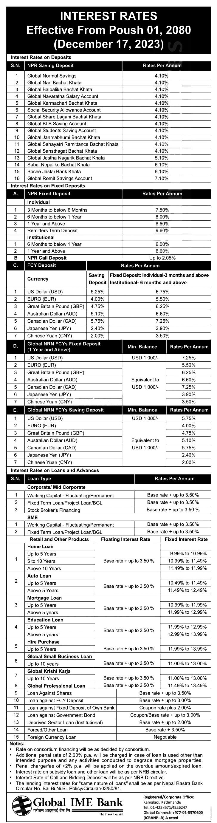 काठमाडौं । ग्लोबल आइएमई बैंकले पुस महिनाका लागि ब्याजदर घटाएको छ । बैंकले आज (पुस १ गते) देखि लागु हुने गरी ब्याजदर घटाएको हो ।