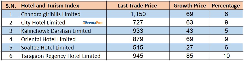 नेप्से बढेसँगै होटल्स एण्ड टुरीजम उपसूचकका सबै कम्पनीको शेयरमूल्य बढ्यो, कुनले कति कमाए ?