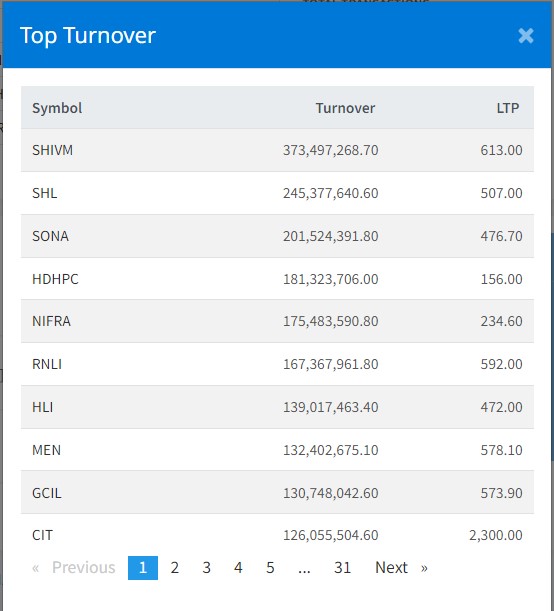 त्यस्तै, सोल्टी होटलको २४ करोड ५३ लाख रुपैयाँ, सोनापुर मिनिरल्सको २० करोड १५ लाख रुपैयाँ, हिमालय दोलखा हाइड्रोपावरको १८ करोड रुपैयाँको कारोबार भएको छ ।