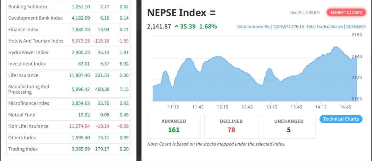 नेप्सेको उकालो यात्रा जारी, २१ सय विन्दु कायमै