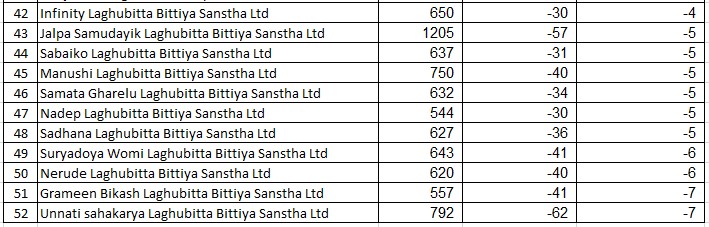 लाभांश खानेबेलामा लघुवित्तहरुको शेयरमा उच्च गिरावट