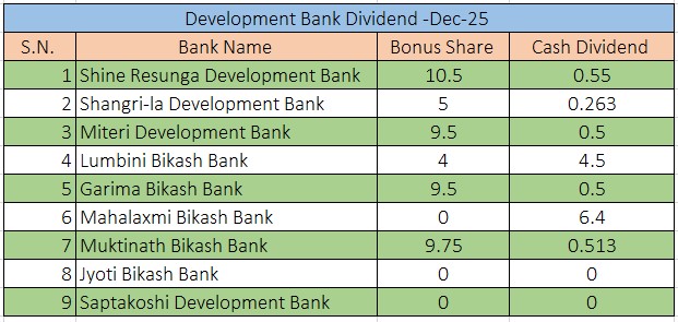 ७ विकास बैंकको लाभांंश घोषणा, कुनको कति ? (सूचीसहित)