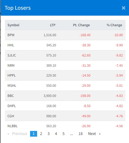 काठमाडौं । बुधबार शेयर बजार दोहोरो अंकले घटेको छ । नेप्से परिसूचक आज १७ दशमलव २३ अंकले घटेर २०७० को विन्दुमा कायम भएको छ ।