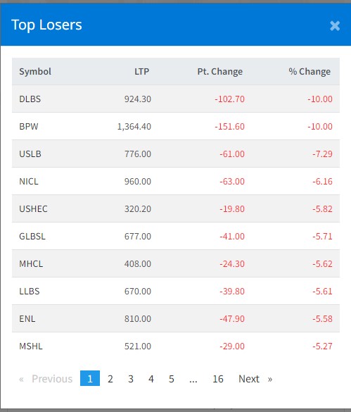 बिहीबार शेयर बजारमा कारोबारमा भएका ३०३ कम्पनीहरुमध्ये १४९ कम्पनीको शेयरमूल्यमा गिरावट आएको छ ।
