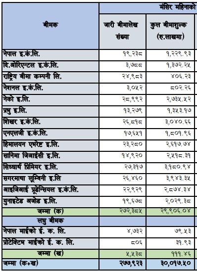 मंसिरमा निर्जिवन बीमा कम्पनीहरुको बीमा व्यवसाय साढे २ अर्बमाथि, कुनको कति ?