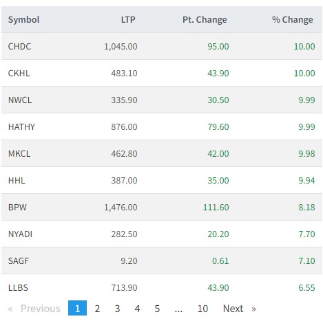 सिईडिबी, चिरख्वा, नेपाल वेयरहाउस, हाथवे, मुक्तिनाथ कृषि, हिमालयन दोलखा, बिपीडब्लू, न्यादी, सानिमा ग्रोथ फण्ड र लक्ष्मी लघुवित्तका लगानीकर्ताले सबैभन्दा धेरै कमाएका छन् ।