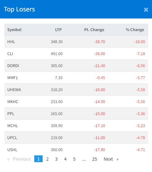 त्यस्तै, उप्पर हेवाखोला हाइड्रोपावरको ५.५८, माया खोलाको ५.५६, पिपल्स पावरको ५.३६, मेन्छियाम हाइड्रोपावरको ५.२३, यूनिभर्सल पावरको ४.७८ र उप्पर स्याङ्गेको ४.७१ प्रतिशतले शेयरमूल्य घटेको हो ।