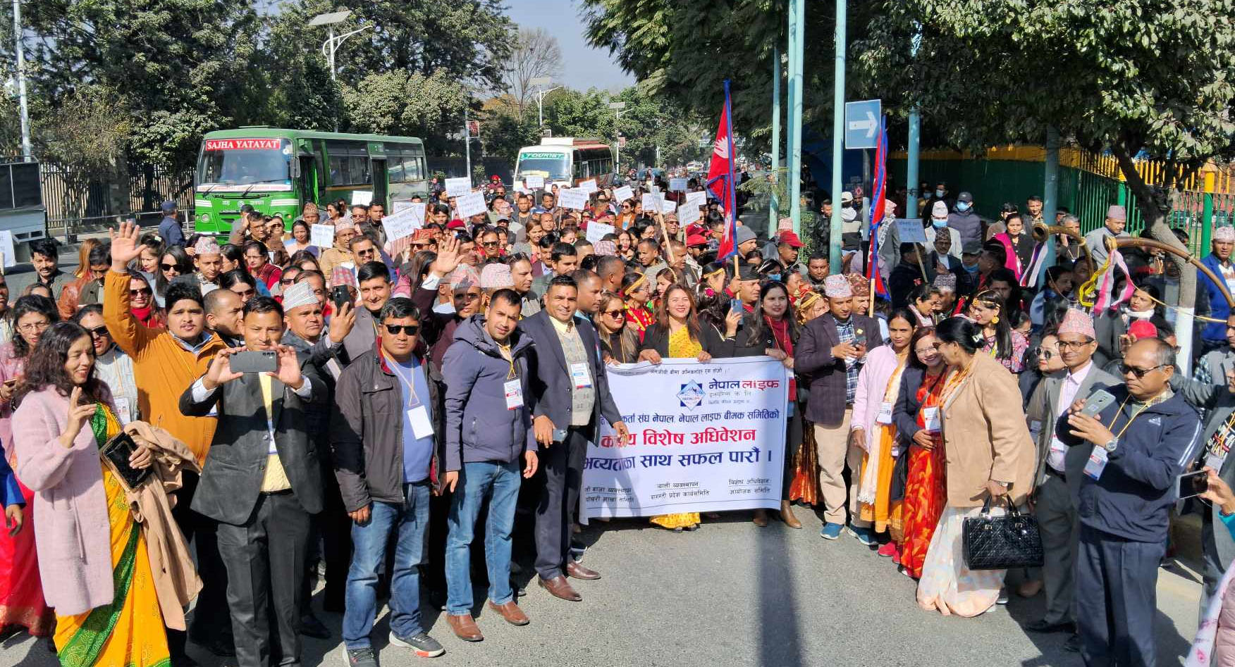 आज बीमा अभिकर्ताहरुले नेपाल लाइफ इन्स्योरेन्स कम्पनीको केन्द्रीय कार्यालय कमलादीबाट राष्ट्रियसभागृहसम्म विविध झाँकीसहित र्याली निकालेका थिए । बीमा अभिकर्ताहरुको पेशागत हक हितको लागि स्थापित संघको आज सम्पन्न विशेष साधारणसभाले नयाँ नेतृत्व पनि चयन गर्नेछ ।