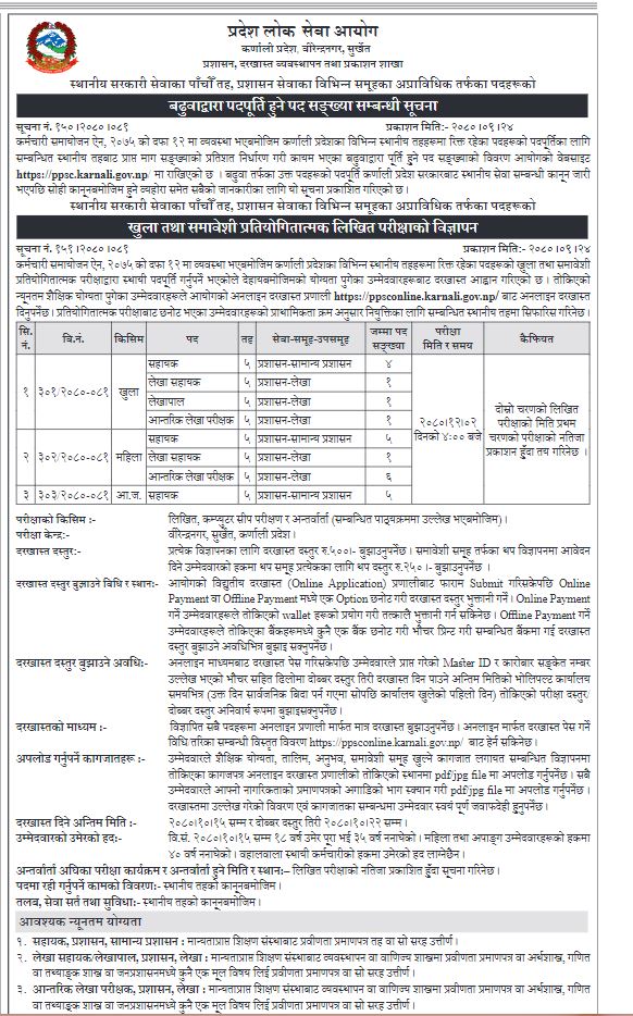 कर्णाली प्रदेश लोकसेवाले माग्यो विभिन्न पदमा खुला दरखास्त (सूचनासहित)