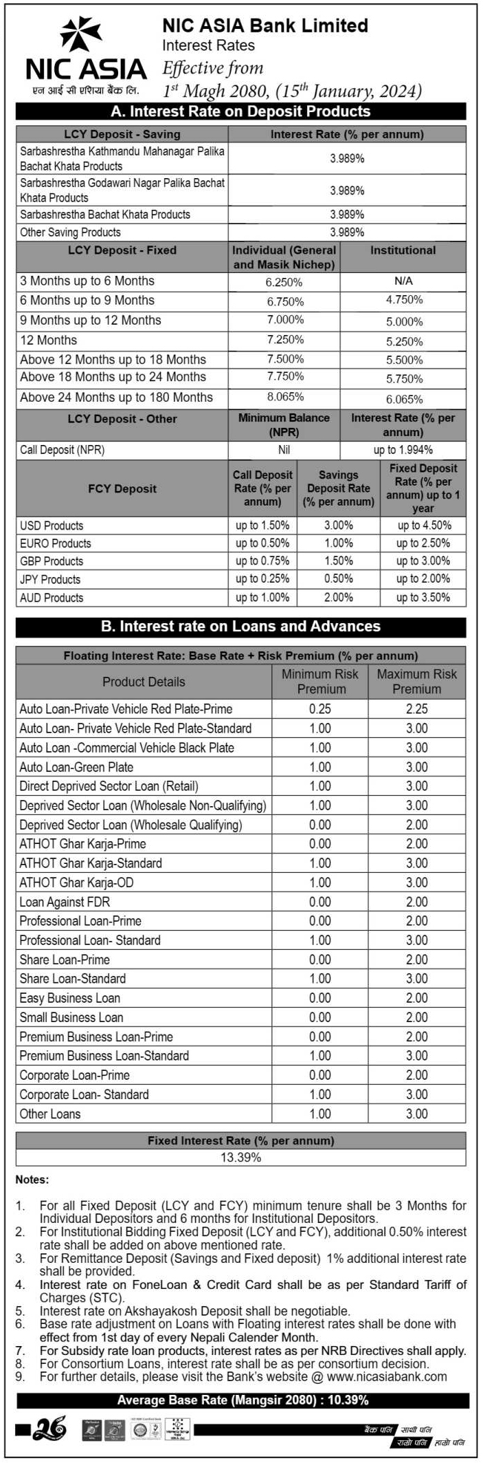 माघ १ गतेदेखि ब्याजदर घटाउने एनआईसी एसिया बैंकको निर्णय, ऋण र निक्षेपको नयाँ ब्याजदर लागू