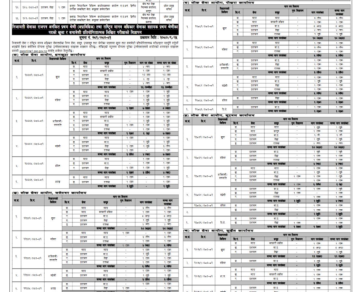 आयोगले धनकुटा, जलेश्वर, काठमाडौं, पोखरा, बुटवल, सुर्खेत र दिपायल कार्यालयबाट विभिन्न पदका लागि खुला तथा समावेशी प्रतियोगितात्मक विज्ञापन आह्वान गरेको हो । जसमा सामान्य प्रशासन, परराष्ट्र, न्याय सेवा, खेलापरीक्ष र राजस्व लगायत छन् ।