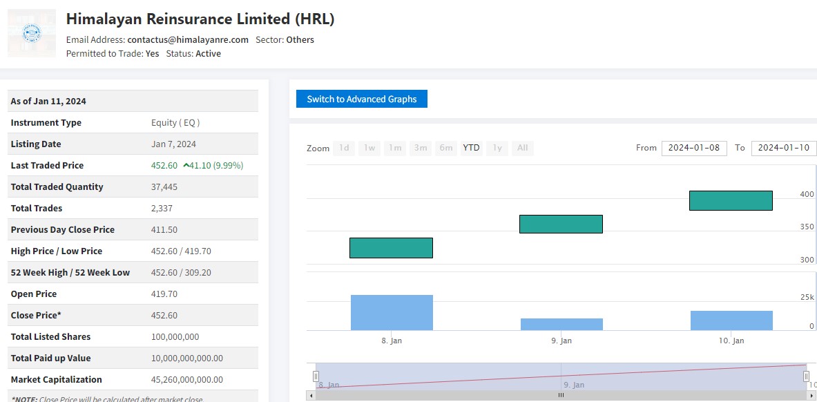 हिमालयन रिइन्स्योरेन्सको सेयर कारोबार सुरु भएदेखि नै सकारात्मक सर्किट, शेयर मूल्य कति पुग्ला ?