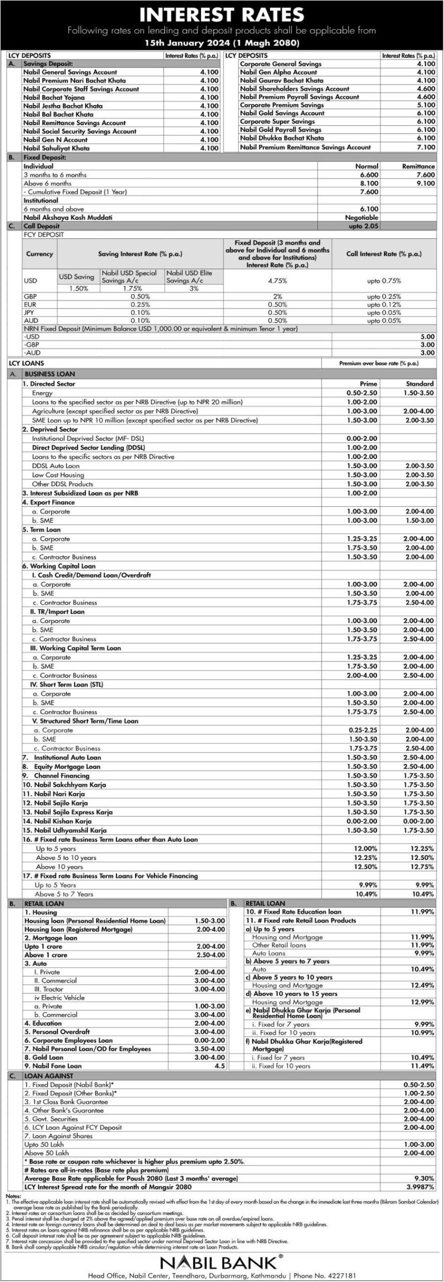 काठमाडौं । नबिल बैंक लिमिटेडले ब्याजदर घटाएको छ । बैंकले माघ १ गतेदेखि लागू हुने गरी नयाँ ब्याजदर सार्वजनिक गरेको हो ।