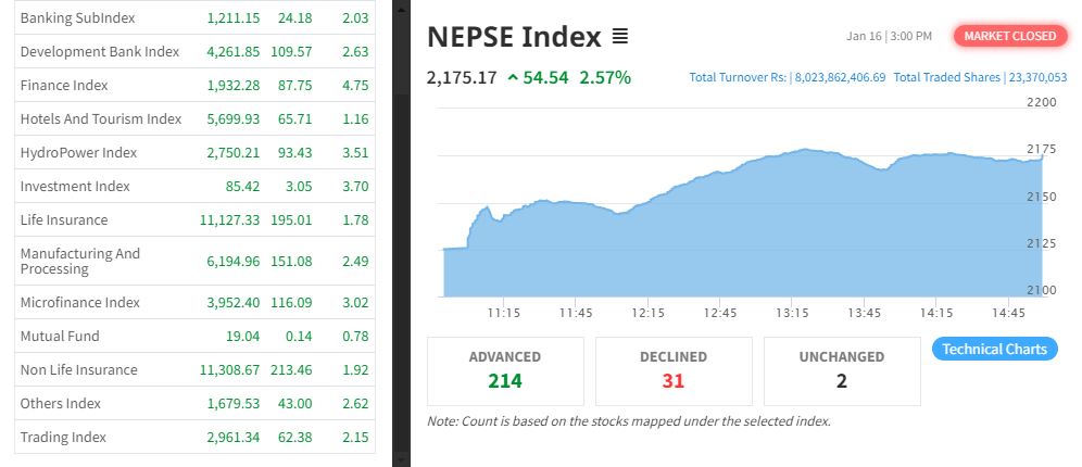 नेप्से उकालो यात्रातर्फ, ८ अर्बको कारोबार, सबैतिर हरियाली