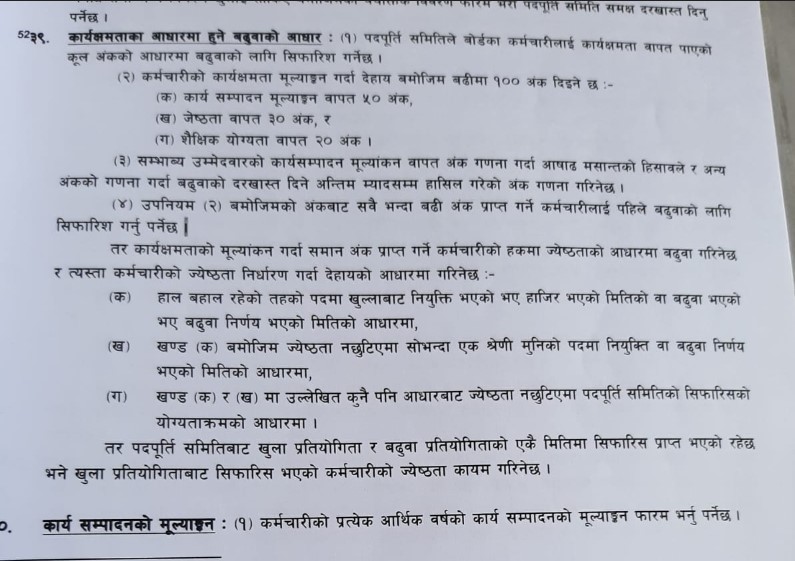 नेपाल धितोपत्र बोर्डको नियमावलीमा कर्मचारीहरुको बढुवा हुँदा कार्यक्षमता मूल्याङ्कन लगायका प्राप्त अंकको आधारमा हुने स्पष्ट व्यवस्था रहेको छ । सो आधारमा एकै दिन बढुवा भएपनि बढि अंक ल्याउने व्यक्ति स्वतः सिनियर हुनेछ । सो आधारमा कार्यकारी निर्देशक डा. नबराज अधिकारीलाई अर्थमन्त्रालयले पत्र दिनुपर्ने थियो । तर, विगत १० दिनदेखि सेबोन नेतृत्व विहिन हुँदा समेत हालसम्म पनि पत्र दिएको छैन ।