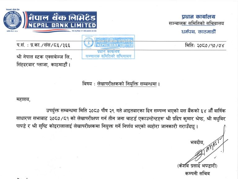 नेपाल बैंकले गर्यो तीन जना लेखापरीक्षक नियुक्त