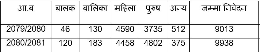 सामाजिक सञ्जाल दुरुपयोगका घटना दर्ता गर्नेमा महिलाको भन्दा पुरुषको संख्या बढी छ । चालु आर्थिक वर्षमा यस्ता उजुरी दिनेमा बालक १२० जना, बालिका १८३ जना, महिला ४ हजार ४५८ जना, पुरुष ४ हजार ८०२ जना र अन्य ३७५ जना रहेका छन् ।