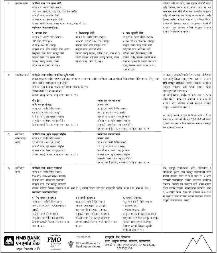 ६ ऋणीको घरजग्गा बिक्री गर्दै एनएमबि बैंक