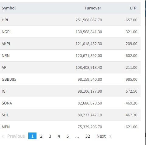 त्यस्तै, ङादी ग्रुप, अरुण काबेली पावर, एनआरएन इन्फ्रास्ट्रक्चर, अपी पावर, गरिमा डिबेन्चर, आइजीआई प्रुडेन्सियल इन्स्योरेन्सको सर्वाधिक कारोबार भएको छ ।