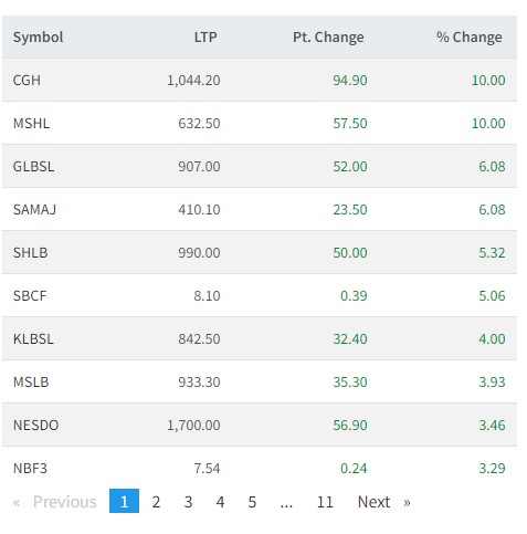 त्यस्तै, गुराँस लघुवित्त, समाज लघुवित्त, सिजनशील लघुवित्त, सनराईज ब्लूचिप र किसान लघुवित्तका लगानीकर्ताले आज सर्वाधिक कमाएका छन्।