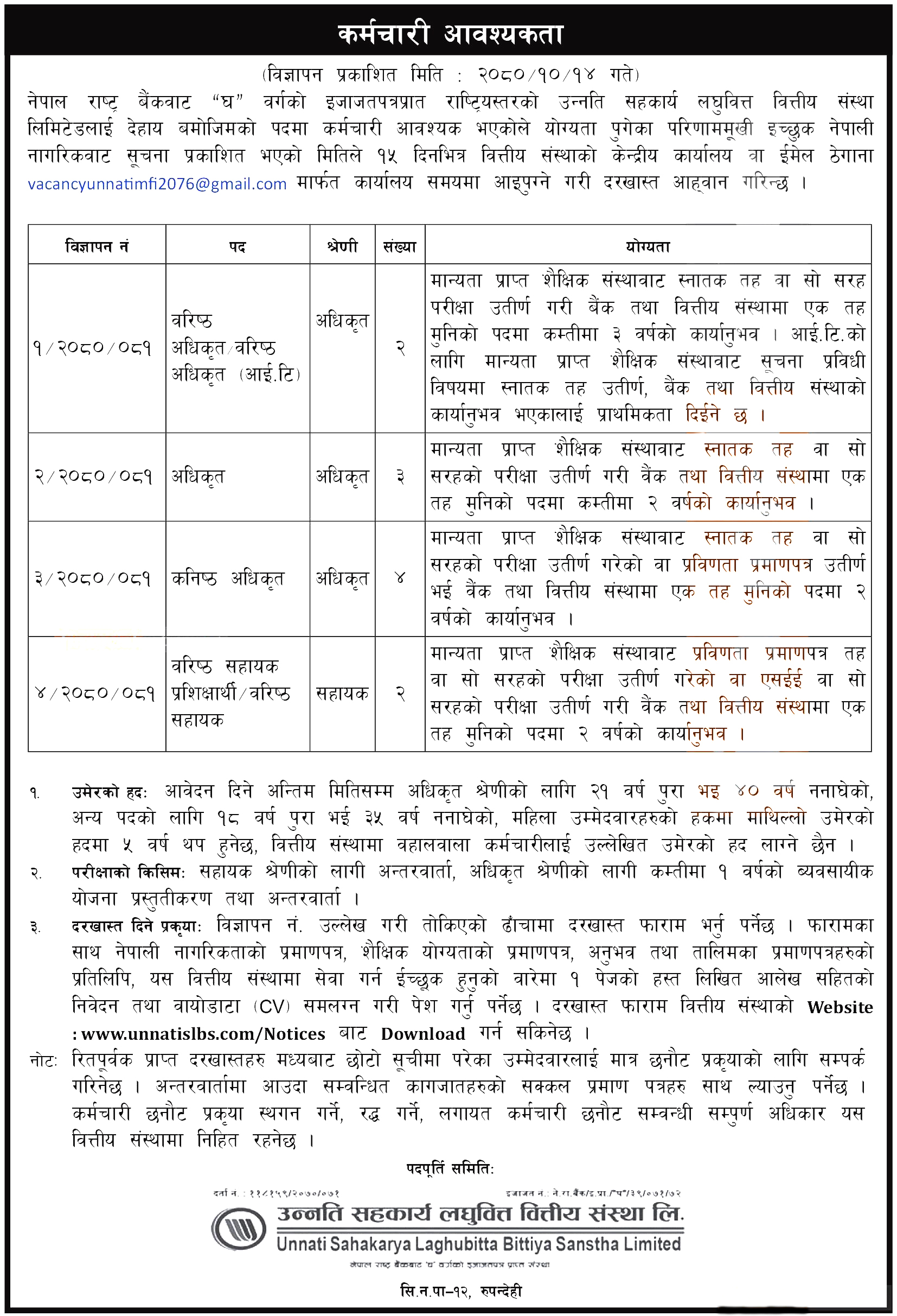 उन्नती सहकार्य लघुवित्तमा रोजगारको अवसर, के–के चाहिन्छ योग्यता?