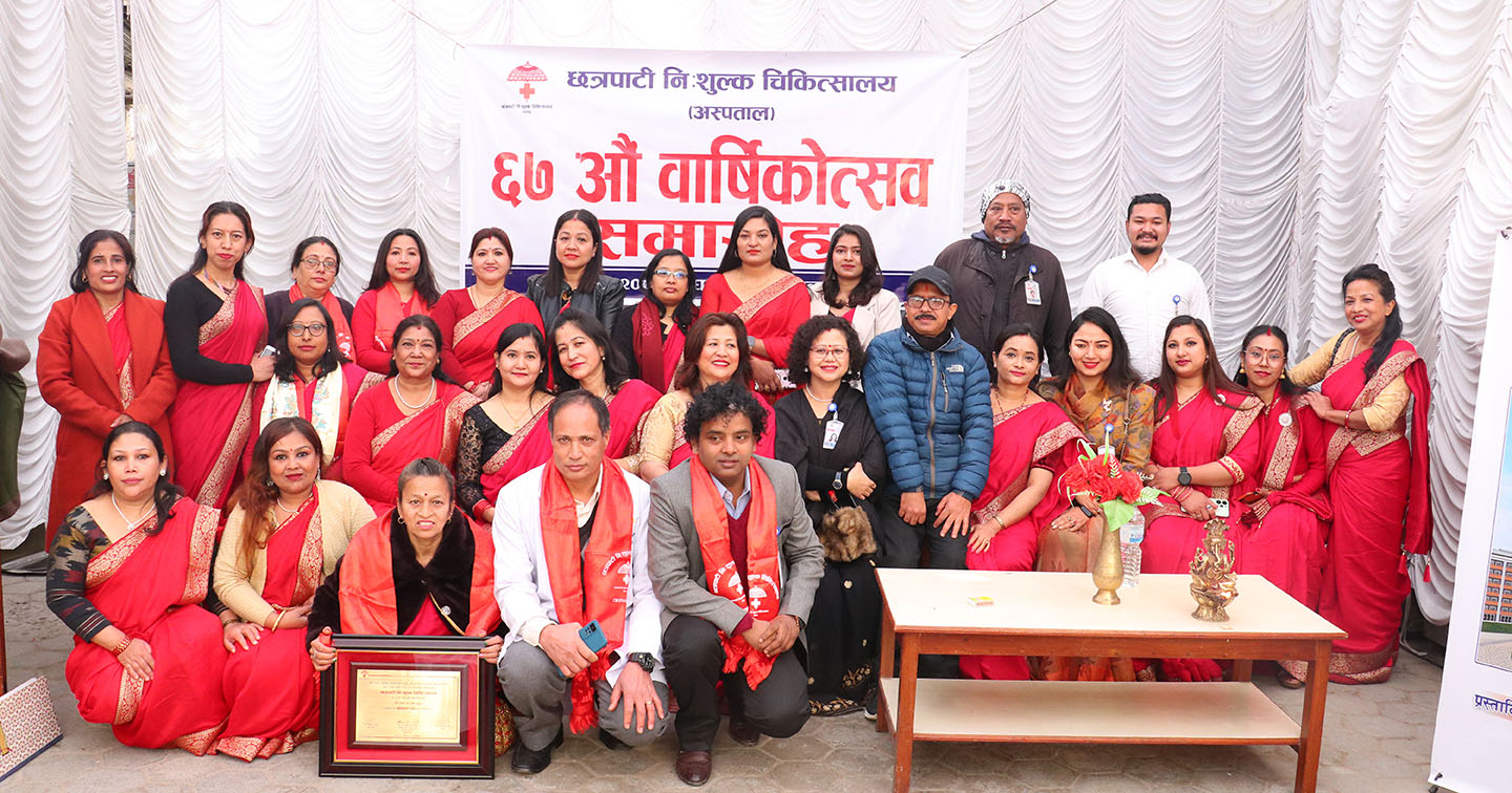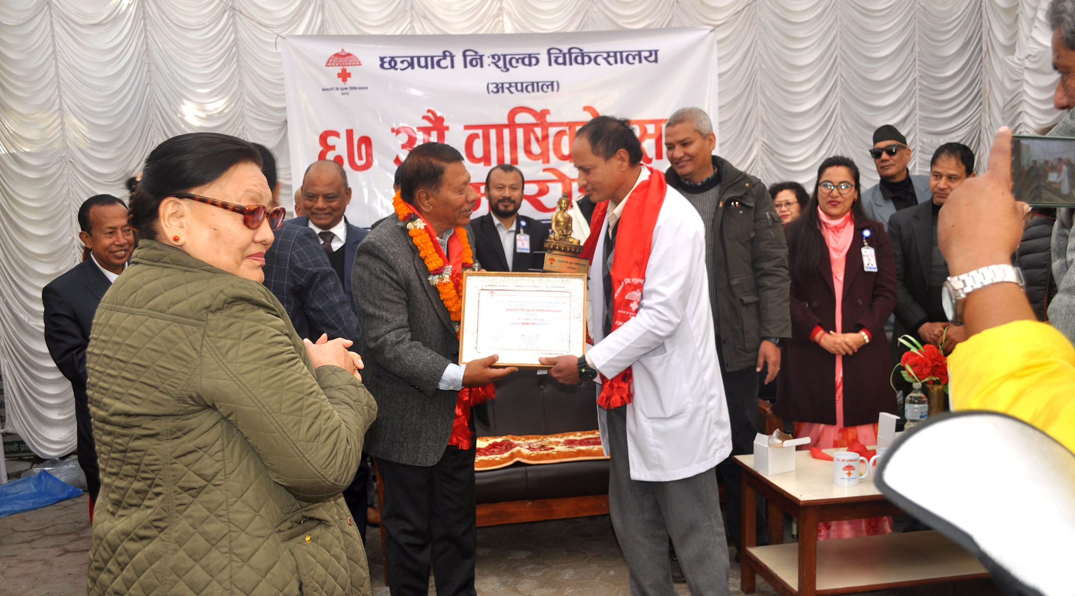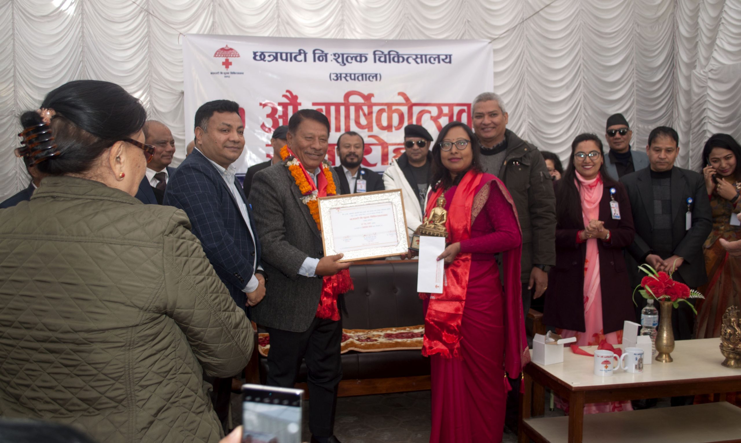 क्षत्रपाटी निःशुल्क चिकित्सालयका अध्यक्ष डा. मनोजमान श्रेष्ठको अध्यक्षतामा आयोजित कार्यक्रममा अस्पतालमा लामो समयदेखि सेवागत कर्मचारीहरुलाई सम्मान तथा पुरस्कार प्रदान गरेको छ । साथै अस्पतालले ३० वर्षे सेवा अवधी पुरा गरी अवकास पाएका कर्मचारीहरुलाई सम्मान तथा पुरस्कार वितरण गरेको छ । सोही क्रममा उत्कृष्ट कर्मचारीको रुपमा डे«सिङका राज कुमार थापा र प्रशासनकी मिनु जोशीलाई सम्मानित गरिएको थियो ।