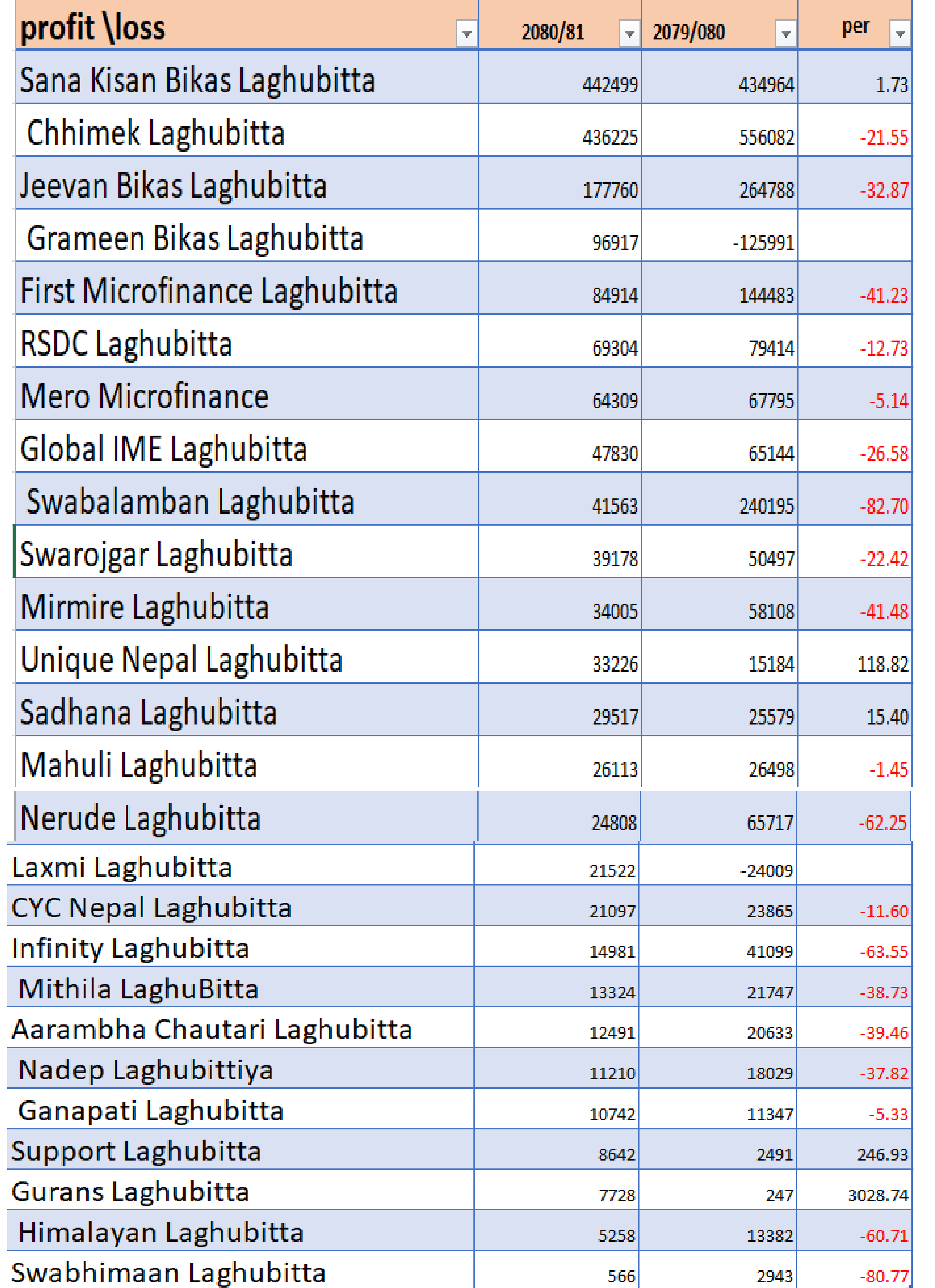 चार माइक्रोफाइनान्सको मुनाफा ऋणात्मक, २१ लघुवित्तको घट्यो, अन्यको अवस्था कस्तो ? (सूचीसहित)