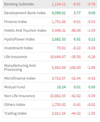 आइतबार तीन उपसूचकमा मात्र हरियाली लागेको छ । आज विकास बैंक समूहको ०.०९ प्रतिशत, हाइड्रोपावर समूहको ०.२२ प्रतिशत र म्युचुअल फण्ड समूहको ०.०५ प्रतिशतले सेयर मूल्य बढेको छ ।