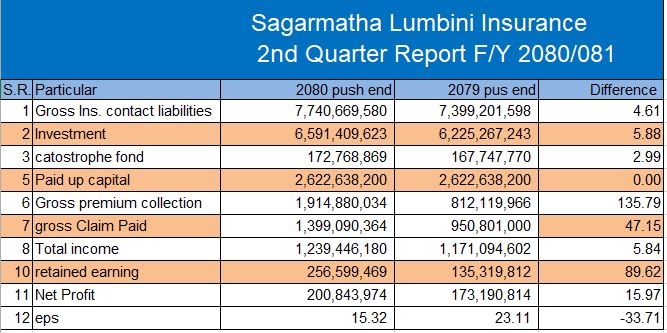 सगरमाथा लुम्बिनी इन्स्योरेन्सको मुनाफा १६ प्रतिशतले बृद्धि, अन्य सूचांक कस्तो ?