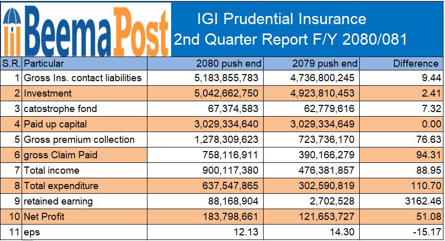 आईजीआई प्रुडेन्सियलको खुद बीमा शुल्क आर्जन ९७ प्रतिशतले बढ्यो, वित्तीय सूचकमा आर्कषक सुधार ?