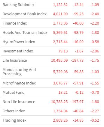मौद्रिक नीति अर्धवार्षिक समीक्षालाई सेयर बजारले दियो रातो कार्पेट, बजारमा भारी गिरावट, १३ उपसूचक राताम्य