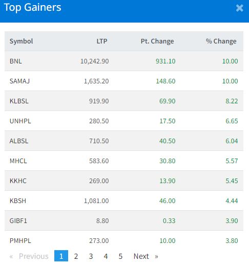 साथै, साना किसान लघुवित्तको ८.२२ प्रतिशत, युनिक हाइड्रोपावरको ६.६५ प्रतिशतले सेयर मूल्य बढेको हो ।
