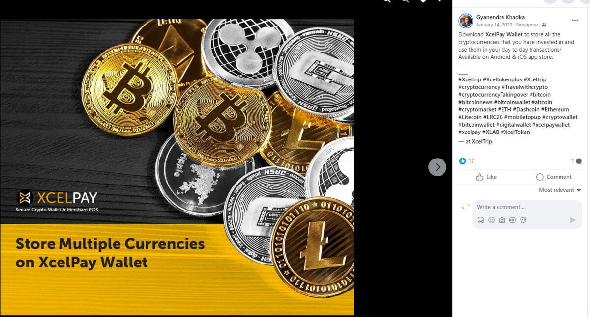 उनले नेपालमा एक्सेलट्रिपको प्रवद्र्धन गर्दै आएका छन् । एक्सेलट्रिपले विट्क्वाइन अर्थात् क्रिप्टोमा कारोबार गर्दै आएको छ । नेपालमा नेटवर्किङ धन्दा कानून विपरीत मानिन्छ । ‘एक्सेल पे’वालेटको आवरणमा उनले नेपालमा अवैध नेटवर्किङ धन्दालाई प्रवद्र्धन गरिरहेका छन् भने क्रिप्टो कारोबार गरिरहेका छन् ।