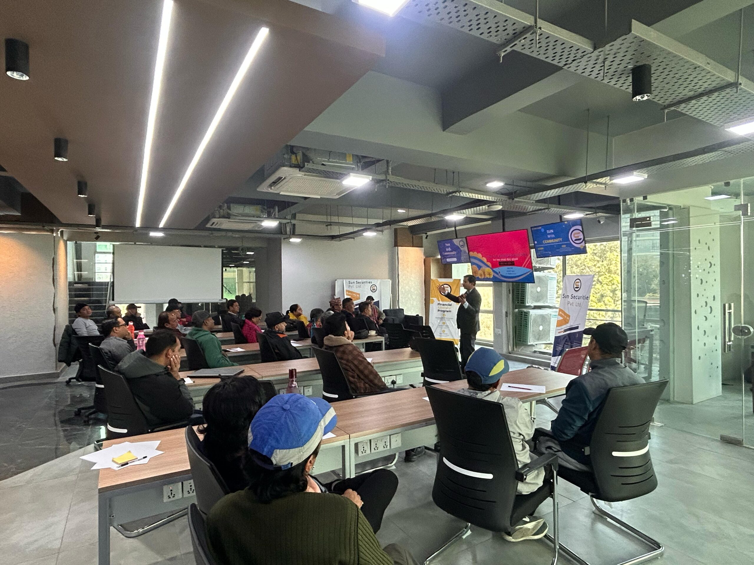 कार्यक्रम अन्तरगत सन सेक्युरिटिज प्रा.लि.ले वडा नं.०१ का स्थानीय वासिन्दाहरुलाई शेयर बजार तथा लगानी सम्बन्धी १ दिने तालिम तथा सचेतना प्रदान गरिएको छ । दिउँसो २ बजेदेखि ५ बजेसम्म सञ्चालित कार्यक्रममा काठमाण्डौ महानगरपालिका वार्ड नं. ०१ का सचिव सर्वज्ञ राज पौडेल को प्रमुख आतिथ्य तथा सन सेक्युरिटिज प्रा.लि.का कार्यकारी अध्यक्ष कृष्ण गिरीको अध्यक्षतामा सम्पन्न भएको थियो । सन विथ कम्युनिटि कार्यक्रम अन्तरगत आजको कार्यक्रममा शेयर बजार सम्बन्धी आधारभूत तालिम कार्यक्रम सञ्चालन गरिएको थियो ।