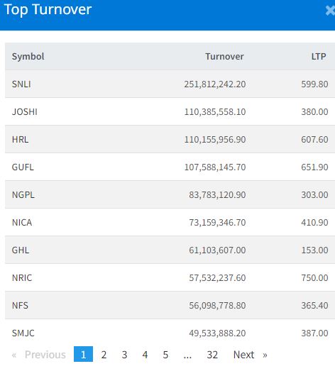 त्यस्तै, जोशि हाइड्रोपावर, हिमालयन रिइन्स्योरेन्स, गोर्खास फाइनान्स, न्यादी ग्रुपको सर्वाधिक कारोबार भएको छ ।