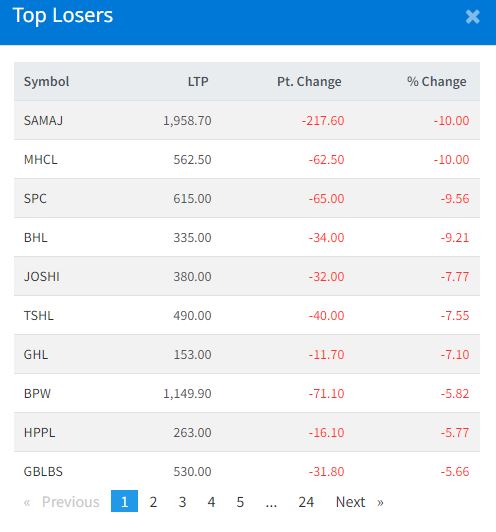 आज समाज लघुवित्त, मैलुङ हाइड्रोपावरको सेयरका नकारात्मक सर्किट लागेको हो । साथे, समलिङ पावरको ९.५६ प्रतिशत, बलेफी हाइड्रोपावरको ९.२१ प्रतिशतले सेयर मूल्य घटेको हो ।