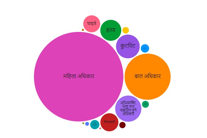 महिलामाथि हुने हिंसाका घटनामा कमी आएको छैन। “चाहे त्यो घरेलु हिंसाका नाममा होस् वा बलात्कारका घटना। ‘बोक्सी’ को आरोपमा महिलामाथि दुर्व्यवहार हुने क्रम रोकिएको छैन,” वर्ष पुस्तकमा भनिएको छ।