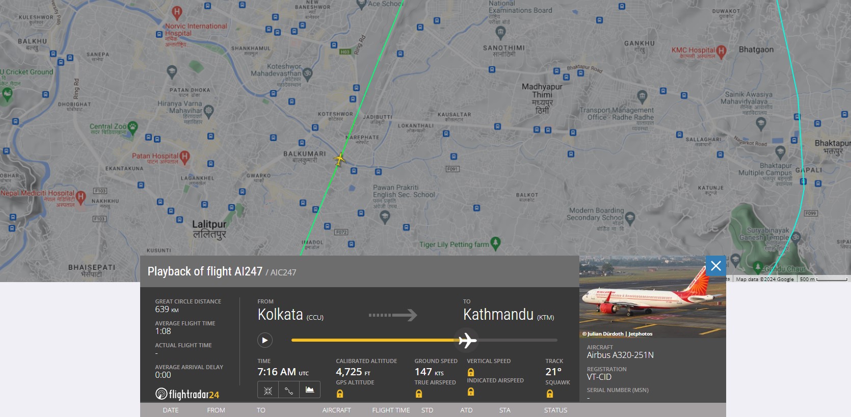 कोलकोताबाट काठमाडौं आउदै गरेको एयर इण्डियाको जहाज त्रिभुवन विमानस्थलमा ओभरसूट