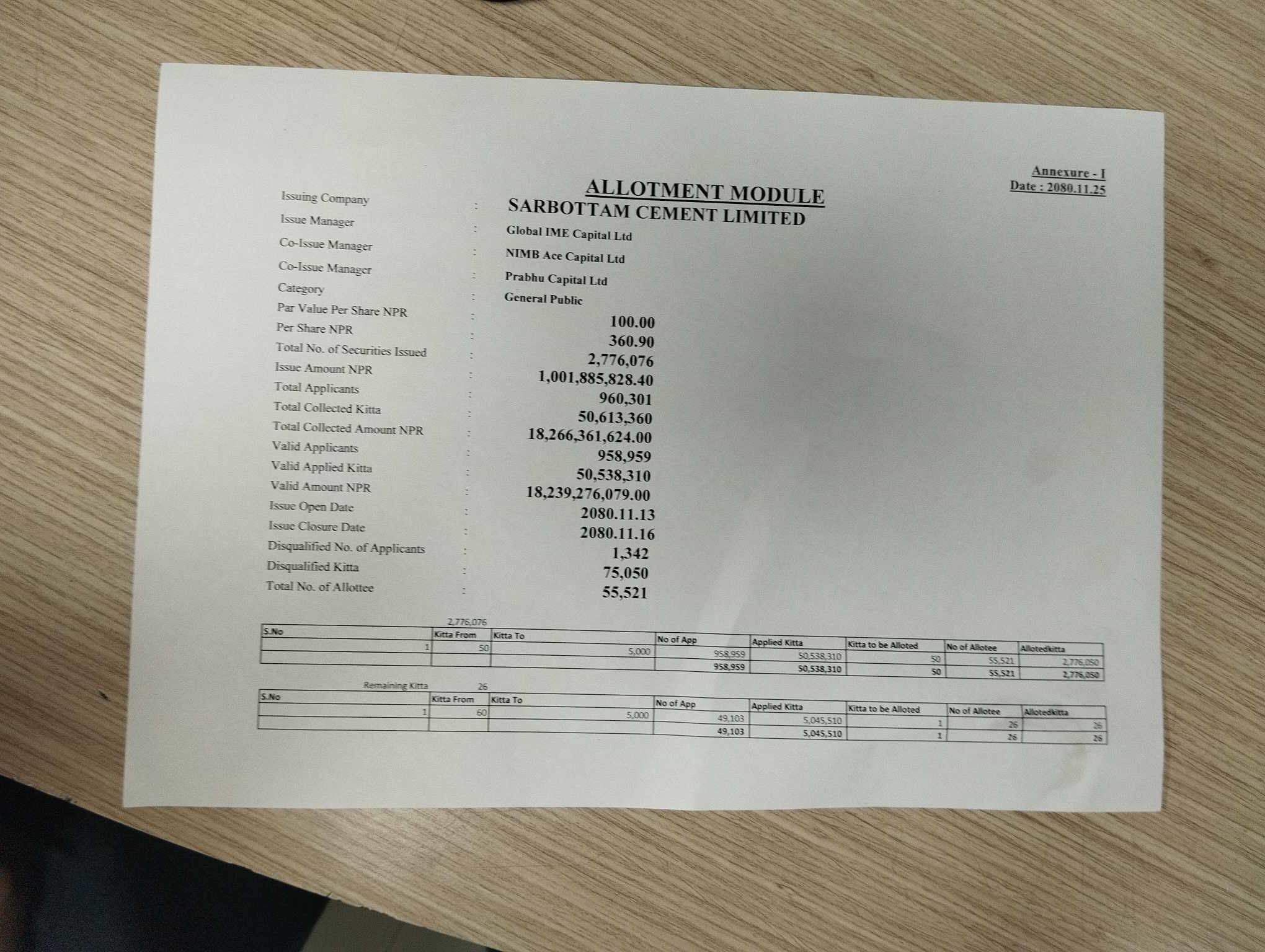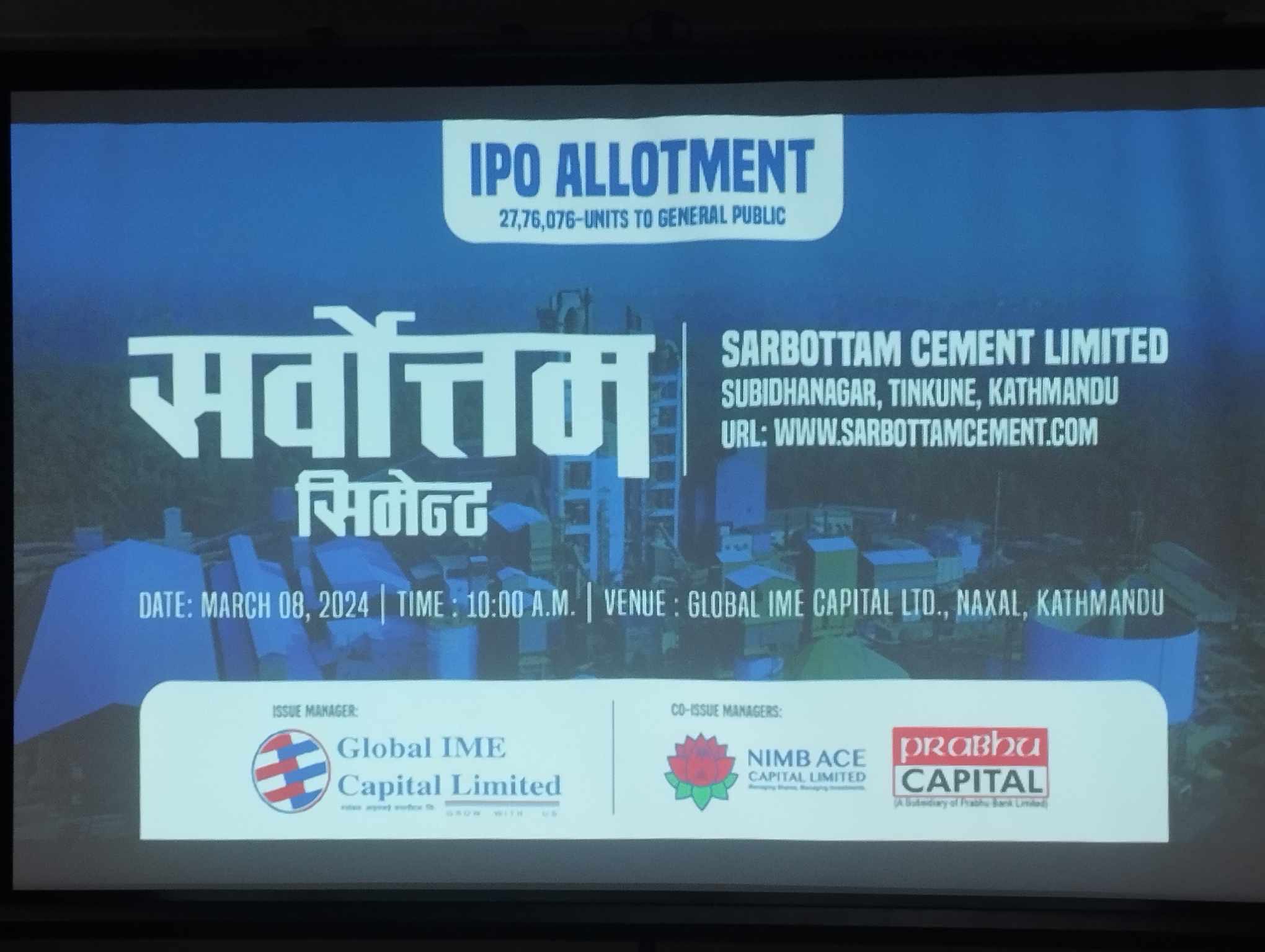 सर्वोत्तम सिमेन्टको आईपीओ बाँडफाँड सम्पन्न,कतिको भयो हात खाली ?
