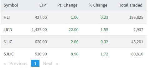 त्यसैगरी, हिमालयन लाईफ ईन्स्योरेन्स, लाई र्ईन्स्योरेन्स कर्पोरेशन नेपाल, नेपाल लाईफ ईन्स्योरेन्स र सूर्यज्योति लाईफको शेयर मूल्यमा बाढोत्तरी आएको हो ।
