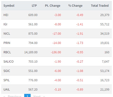 आधाभन्दा बढी बीमा कम्पनीहरुको शेयरमूल्यमा गिरावट
