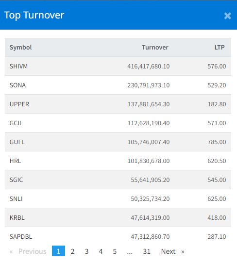 आज लगानीकर्ता शिवम सिमेन्टको शेयरमा झुम्मिएका छन् । कम्पनीको आज ४१ करोड ६४ लाख रुपैयाँको कारोबार भएको छ । साथै, आज सोनापुरको २३ करोड ७ लाख रुपैयाँ, अप्पर तामाकोशीको १३ अर्ब ७८ करोड रुपैयाँको कारोबार भएको छ ।
