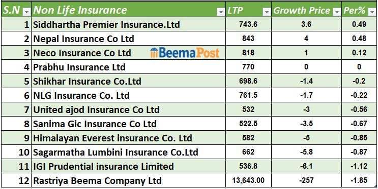 १९ बीमा कम्पनीको शेयर मूल्यमा गिरावट, अब प्रतिकित्ता कतिमा किन्न पाइन्छ ?