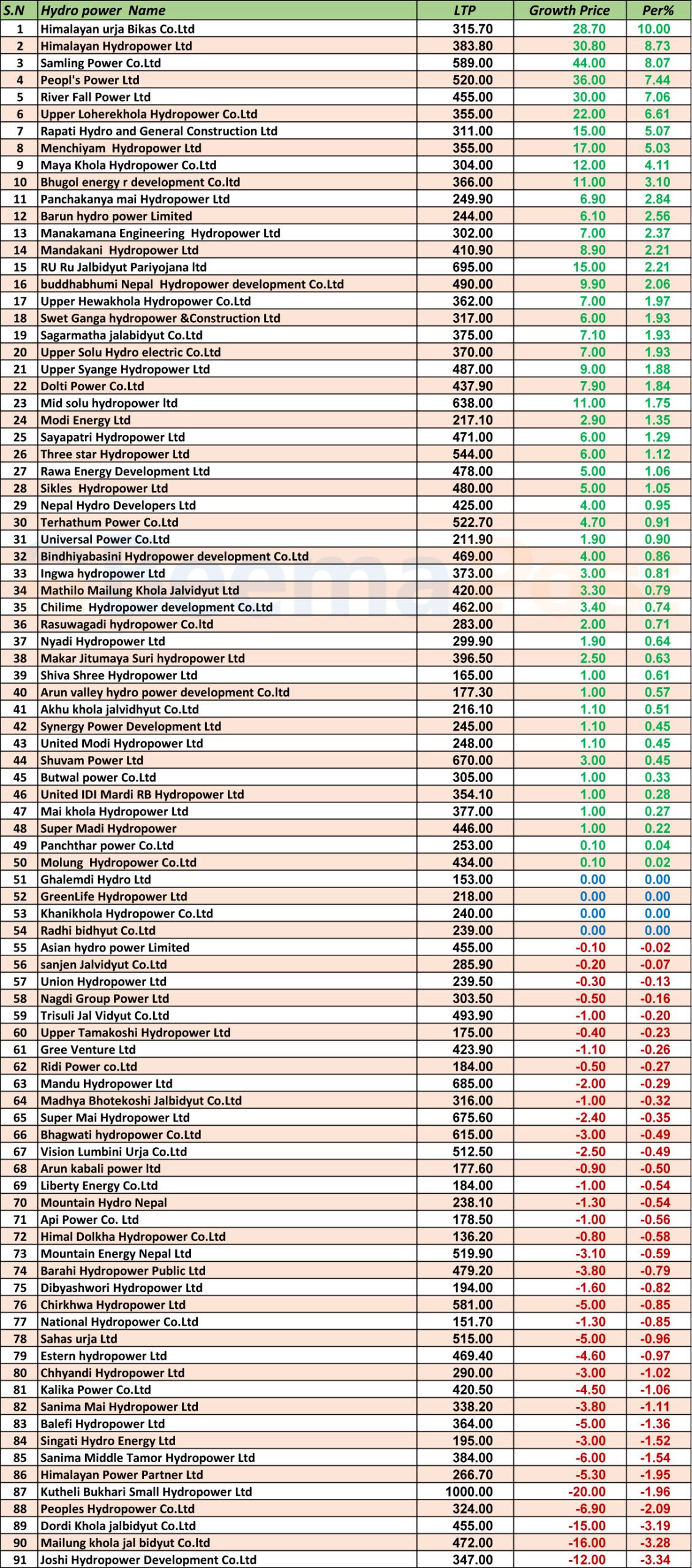 ५० हाइड्रोपावर कम्पनीको शेयरमूल्य बढ्दा ३७ को घट्यो, कुनको मूल्य कति?