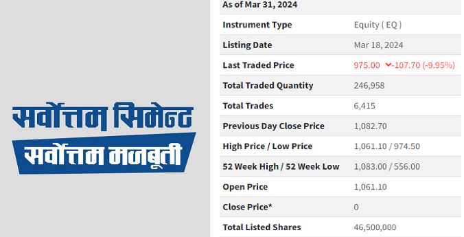 सर्वोत्तम सिमेन्टको शेयरमा नकारात्मक सर्किट