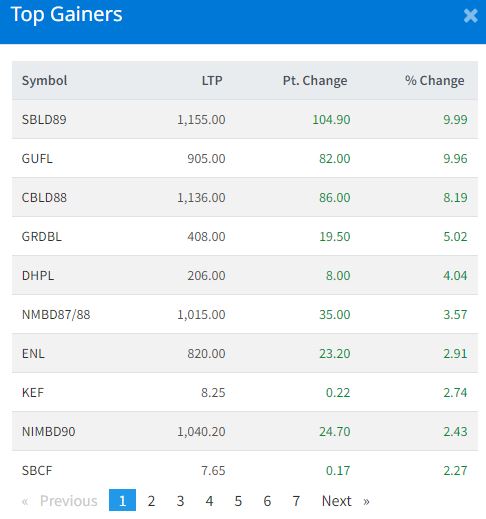 नेपाल स्टक एक्सचेञ्ज (नेप्से) १४.८१ अकंले घटेर १९९१.७१ बिन्दुमा बन्द भएको छ । आज ३१२ कम्पनीको ५४ लाख ७१ हजार ६८ कित्ता शेयर किनबेच हुँदा २ अर्ब १० करोड ३० लाख १९ हजार रुपैयाँको कारोबार भएको छ ।
